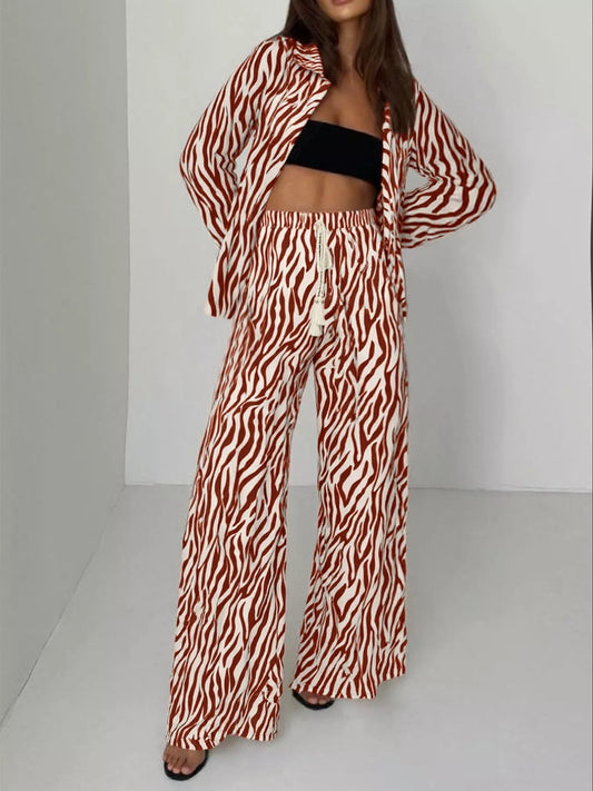 Zebra Print Relaxed Fit Top and Pants Two-Piece Set